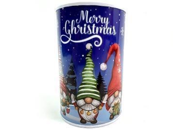 Puszka metalowa skarbonka świąteczna skrzaty 8 x 12cm