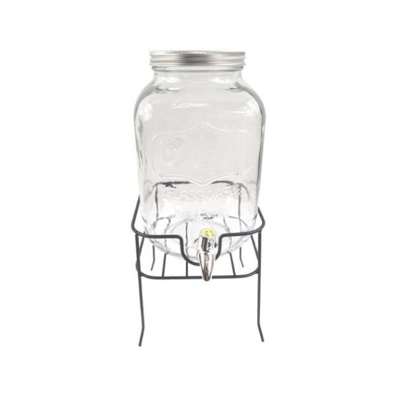 Szklany słój z kranikiem na stojaku o pojemności 4l - idealny na wodę,sok, lemoniadę, mrożoną herbatę czy poncz.