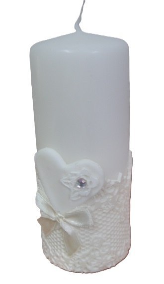 Świeca pieńkowa KL-5 serce w koronce matowa biała