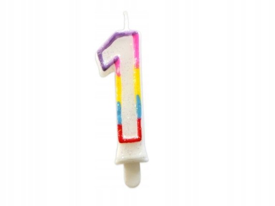Świeczka urodzinowa ''1'' tęczowa + brokat - 24 szt. 62-41