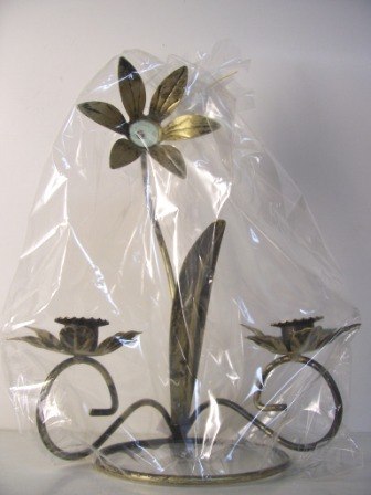 Świecznik metalowy 2-ramienny + kwiatek - 1004