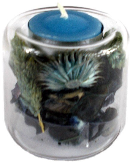Świecznik szklany 6x6cm z suszem i świeczką w pud. | DE-404TH