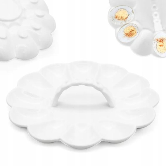 Talerz 23cm do jajek talerzyk na jajka porcelanowy z uchwytem podstawka półmisek TR-24-407