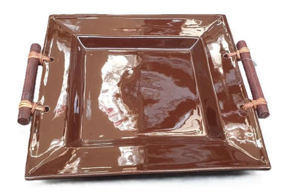 Talerz ceram kwadratowy + bambus 25 x 25 cm