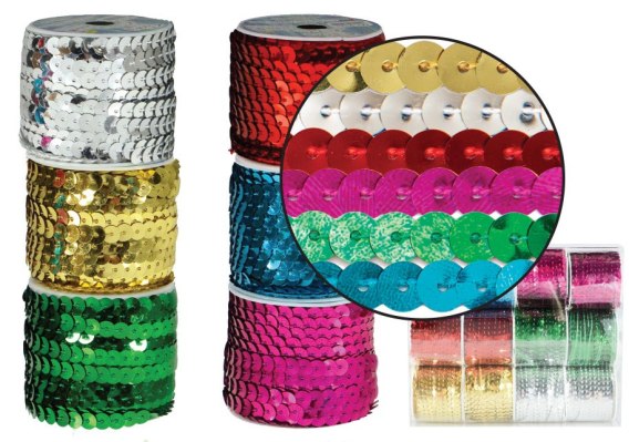 Taśma cekinowa 6 kolorów metalizowanych, dł. 10 m. displ. 12 rolek