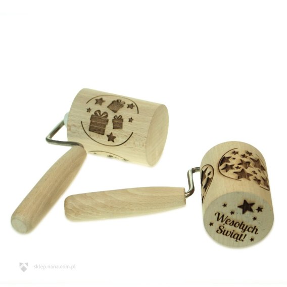 Wałek drewniany do foremki z grawerem Wesołych Świąt 16 x 7,5 cm P1079
