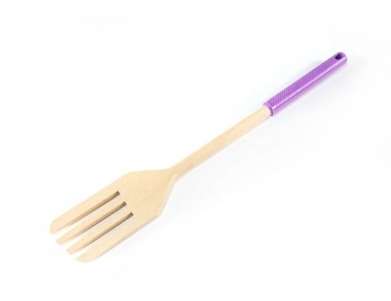 Drewniany widelec ze specjalnym przeznaczeniem do różnego rodzaju sałat i sałatek ułatwi ich nakładanie. Silikonowa rączka zwiększa komfort użytkowania ochraniając przed jego wyślizgnięciem się z dłoni. Drewniany materiał jest w pełni bezpieczny dla zdrowia i nie wchodzi z reakcję z potrawami.