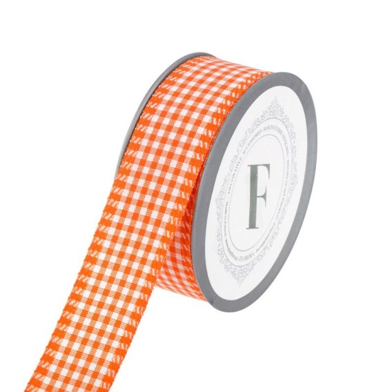 Wstążka krata biało pomarańczowa DOROTHY 4cmx10m 22543 M.04/10 01-10-01