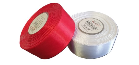 Wstążka satynowa 38 mm x 32 m biała + czerwona ( 2 szt ) AX38-01-08