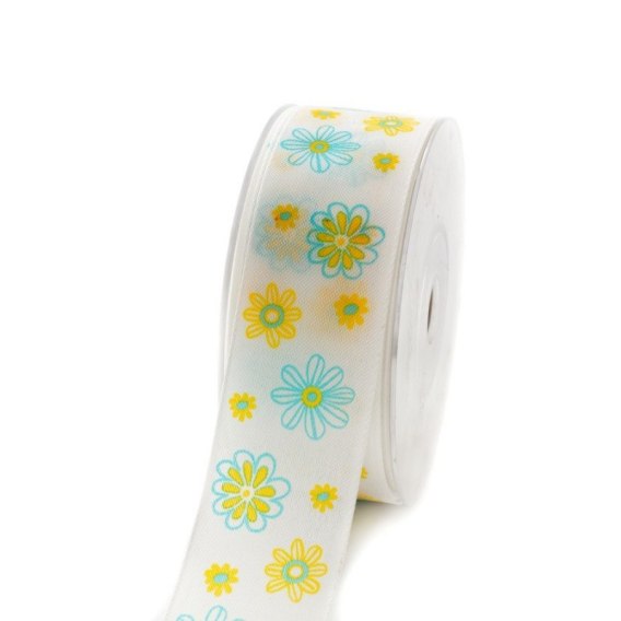 Wstążka tkana margaretki turkusowa jasnopomarańczowa | 225287 .M.04/10 01-37-08