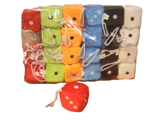 Zawieszka na przylepiec kostka do gry pluszowa 24 szt