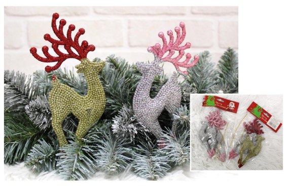Zawieszki ażurowe brokatowe RENIFERY kpl 2 szt ZŁOTE/SREBRNE