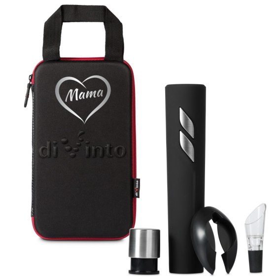 W zestawie znajdziesz wszystko, co niezbędne do właściwego podania wina: elektroniczny korkociąg, który w kilka sekund i bez wysiłku otwiera wino, wygodny nożyk do folii ochronnej, nalewak z aeratorem, który pomoże wydobyć z wina pełnię jego smaku, a także stoper z pompką próżniową, który przedłuży świeżość otwartego wina.