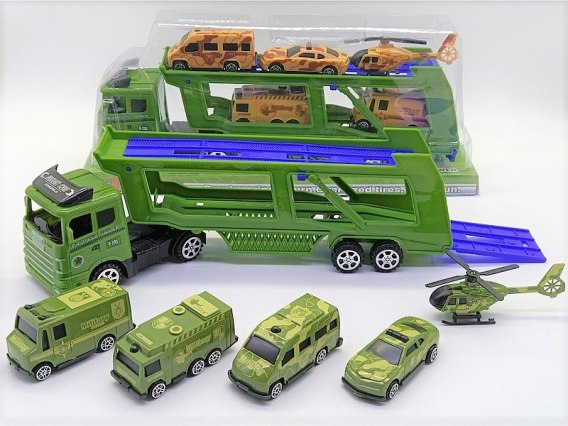 Zestaw auto wojskowe z lawetą i 5 pojazdami