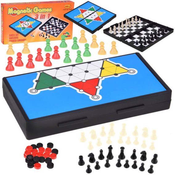 Zestaw gier 3w1 szachy warcaby chińczyk magnetyczne strategiczna GR0676