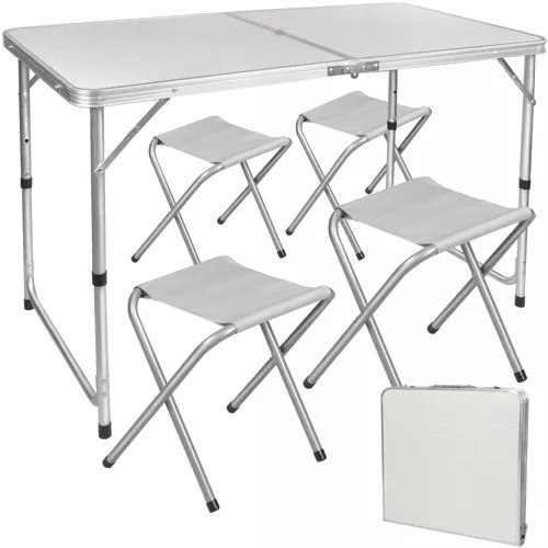 Zestaw kempingowy z 4 krzesełkami, zarówno dla dzieci jak i dorosłych doskonale sprawdzi się na wyprawach poza miasto, ale nie tylko - dzięki możliwości regulacji sprawdzi się doskonale jako zestaw podczas przyjęcia urodzinowego dla Twojego dziecka. Waży zaledwie niecałe 8kg, a dzięki możliwości przenoszenia go w formie walizki z uchwytem jego transport nie stanowi żadnego problemu. Blat stołu jest jednocześnie walizką, w której możemy schować krzesełka, posiada zabezpieczenia, dzięki którym nie ma ryzyka, że podczas transportu walizka się nie otworzy. Stół zaprojektowany został z ciekawym wzorem jest bardziej praktyczny podczas wycieczki niż biały. Kompaktowe wymiary pozwalają na przechowywanie go w kamperze, przyczepie kempingowej czy po prostu w bagażniku. Podczas wyjazdów bardzo ważna jest dobra organizacja miejsca, dlatego tak ważne jest, by produkt zajmował jak najmniej miejsca.