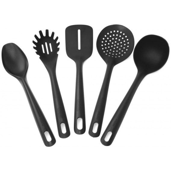 Funkcjonalny kształt rączek sprawia, że przybory pewnie i wygodnie trzyma się w dłoni. Wysokiej jakości tworzywo, z którego wykonane zostały sztućce jest odporne na wysokie temperatury ( 210 stopni Celsjusza). Przybory nie tworzą zarysowań na powierzchni naczyń.